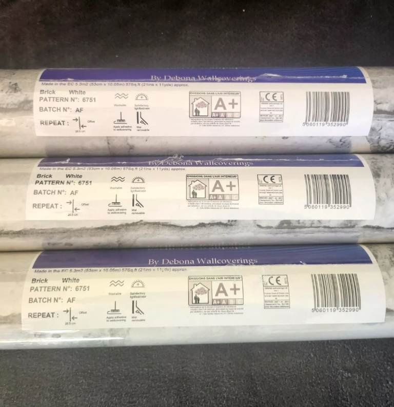 X3 rolls grey and white brick effect wallpaper. Easy to match up.
