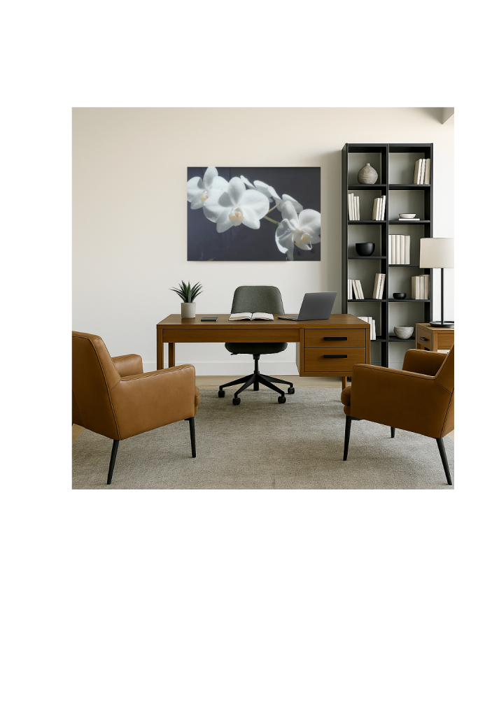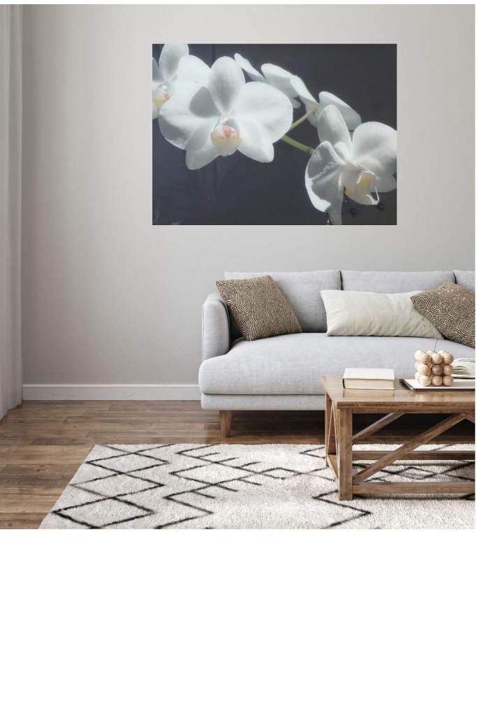 Its soft white petals and dark background bring a refined, tranquil elegance to any room.