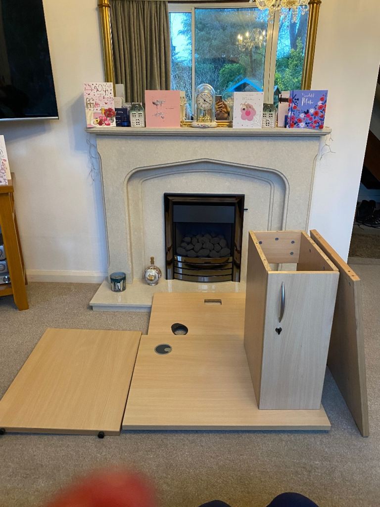 Pale Oak coloured flat pack with screws.
