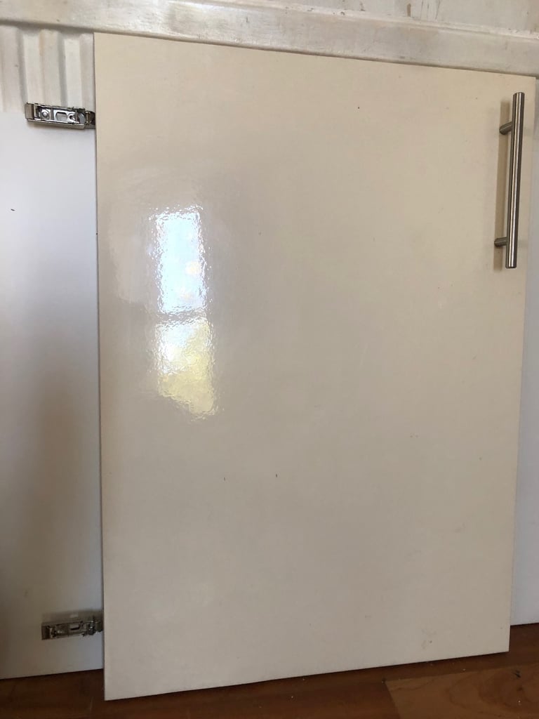 Door for a Kitchen cabinet. Cream gloss flat panel door £8.