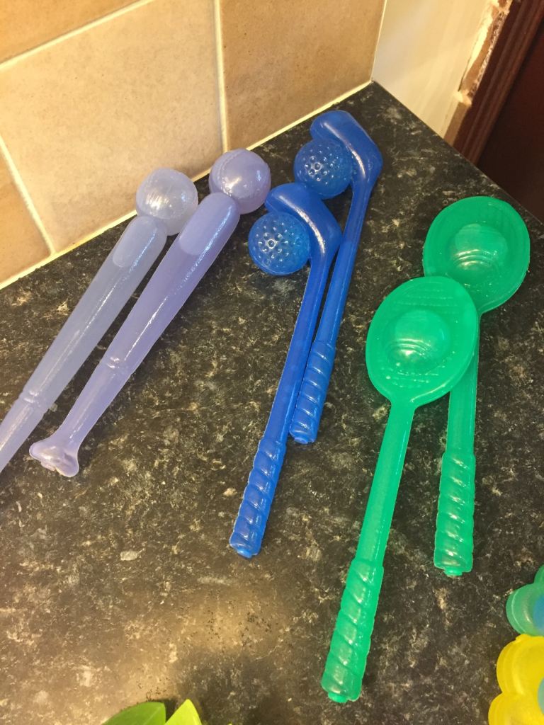 6 Large Sports Equipment Shaped Pieces (Golf Clubs, Tennis Racquets, Etc.)