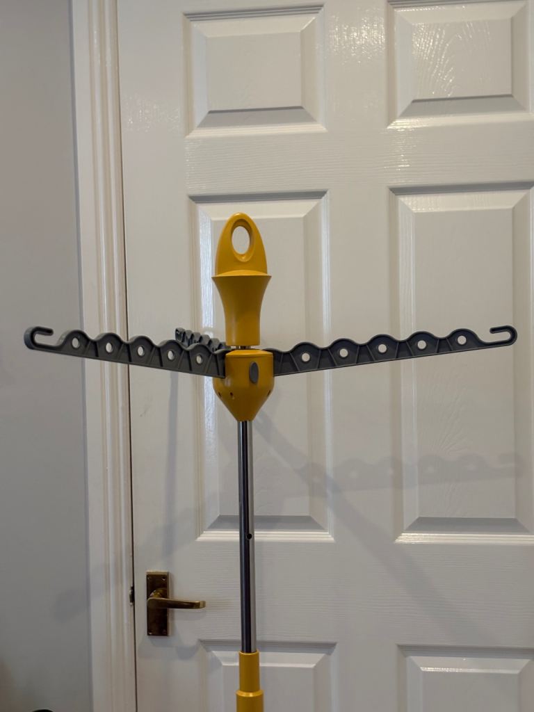 Drying rack, lightweight, collapsible, compact, grey and yellow, VGC