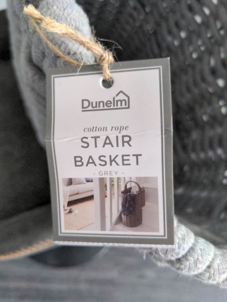 Hand made from cotton rope, stunning stair basket. The trendy piece will help to keep your home neat and tidy, in addition to being placed where clutter can be easily stored. I used it to take items up and down the stairs leaving one hand free for the bannister.