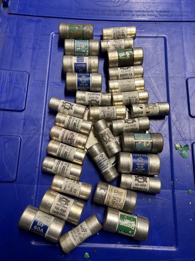 Electrical mains fuses (various sizes and amperage’s)