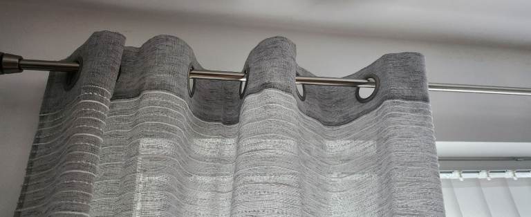 Grey eyelet net curtains x 2 . Only selling due to change of decor. Approx width 66" x 90".Collection only. Genuine interest thanks