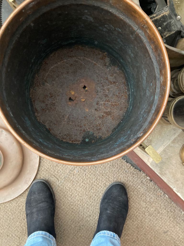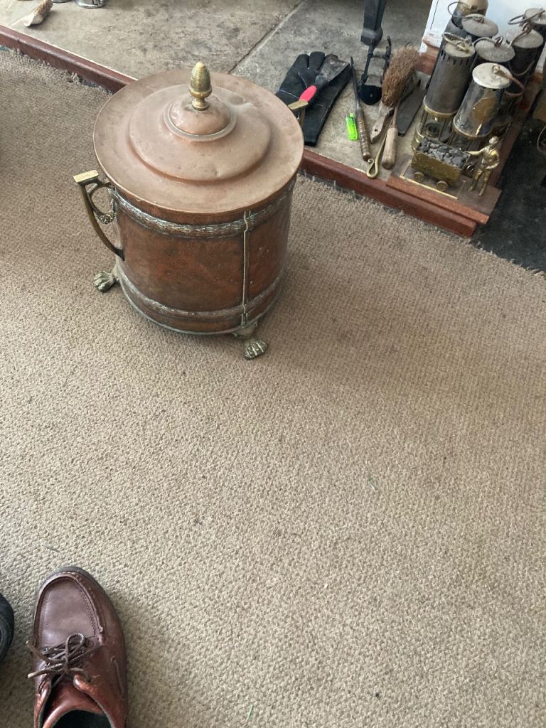Vintage brass bin with claw feet and handles