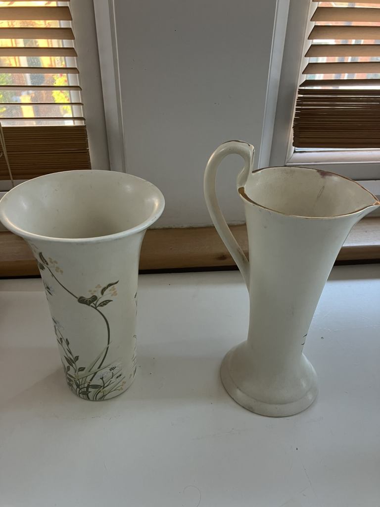A nice pair of flowered ceramic items - one vase and one jug. Ideal for home storage or holding flowers.