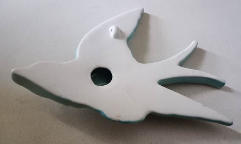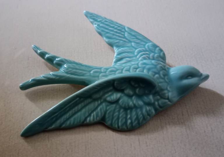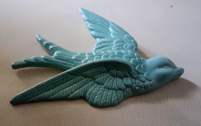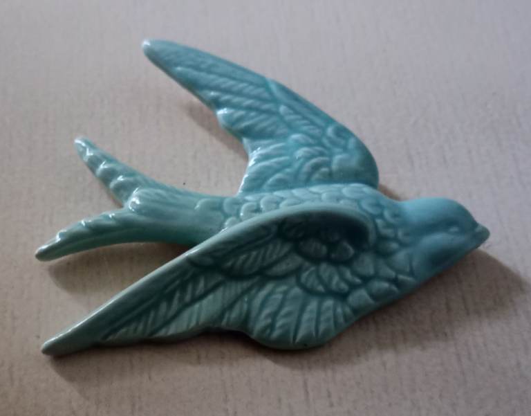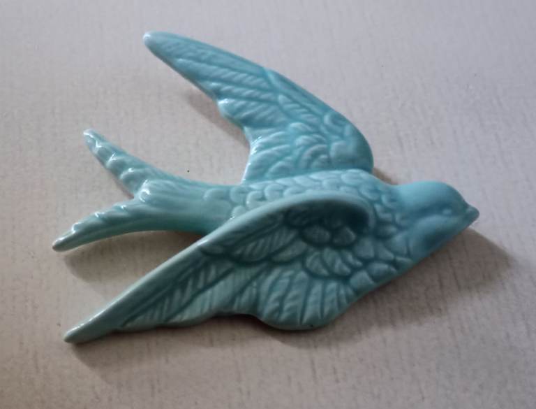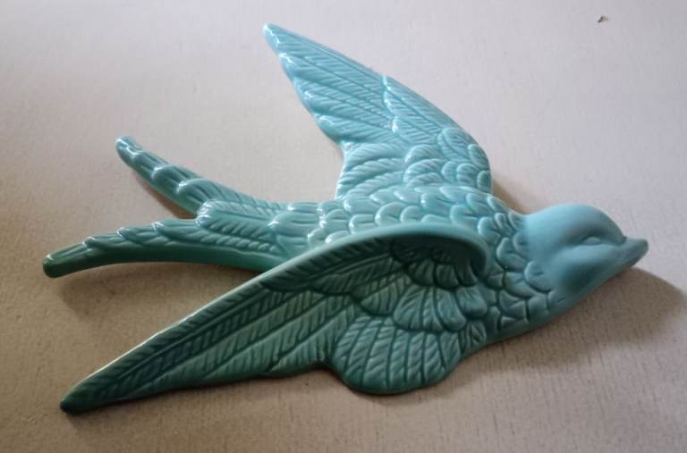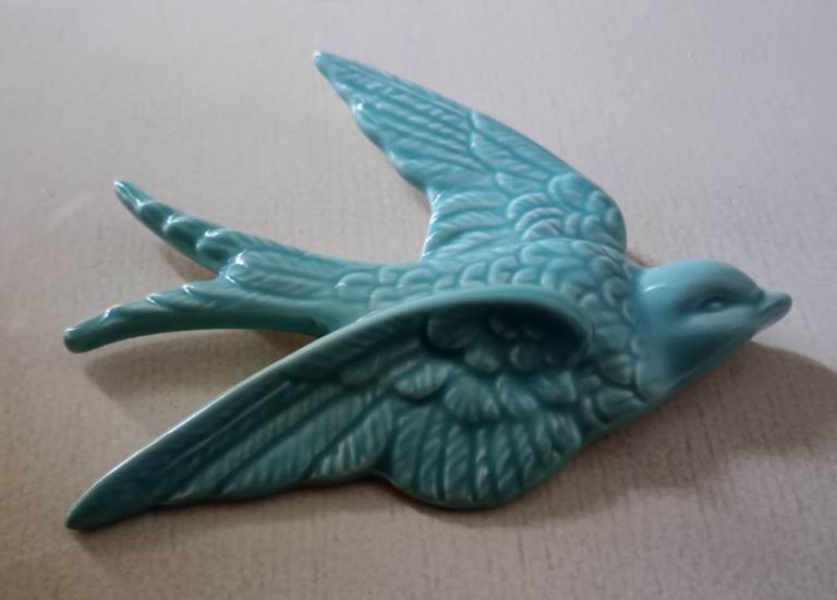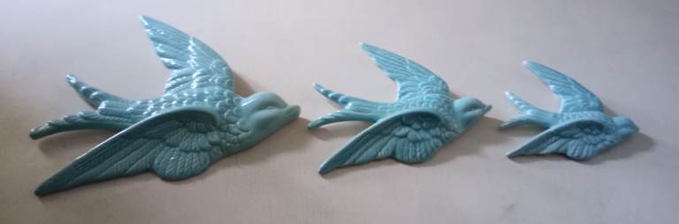 Sass & Belle retro wall decorations. 3 lovely ceramic flying swallows in duck egg blue. Make a nice touch to a kitchen, hall etc.