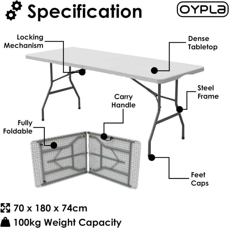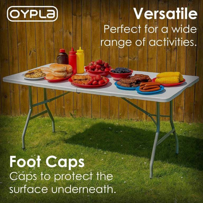6ft 1.8m Folding Heavy Duty Catering Trestle Party Garden Table With Carry Handle Portable Space-Saving Outdoor & Indoor Use