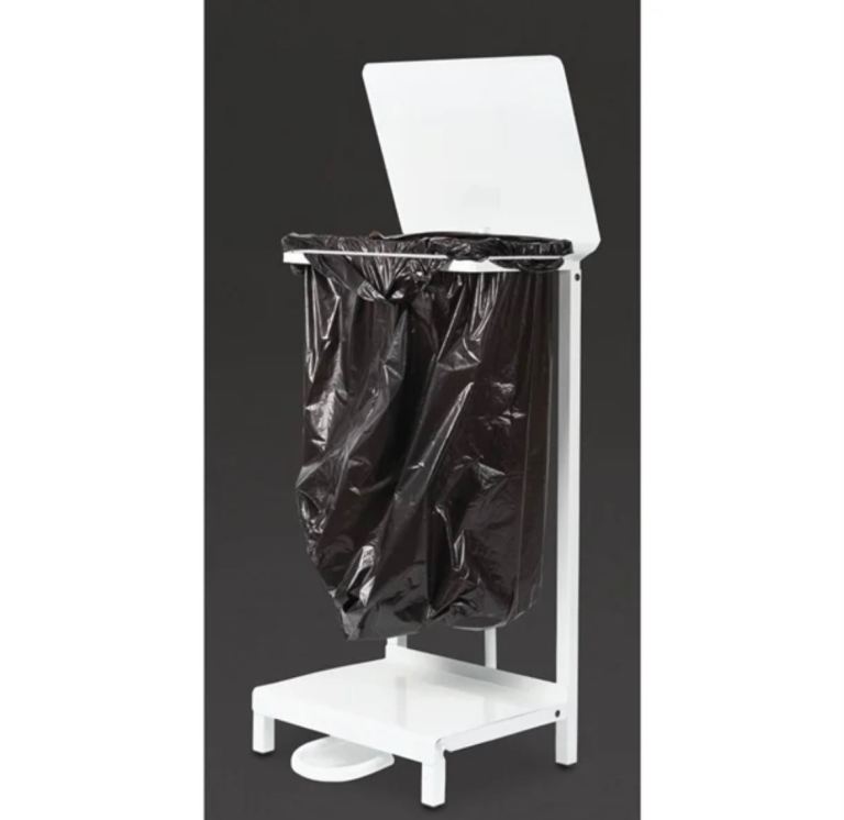 Jantex free standing sack holder. Dispose of waste hygienically, ideal for various settings including commercial kitchens, home, pubs, schools and more. Its simple foot pedal operation enables hands free use, promoting hygiene and reducing cross contamination.