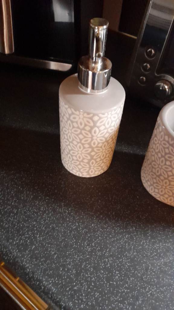 Soap dispenser in good new condition Grey white in colour Having clear out check my other ads thanx