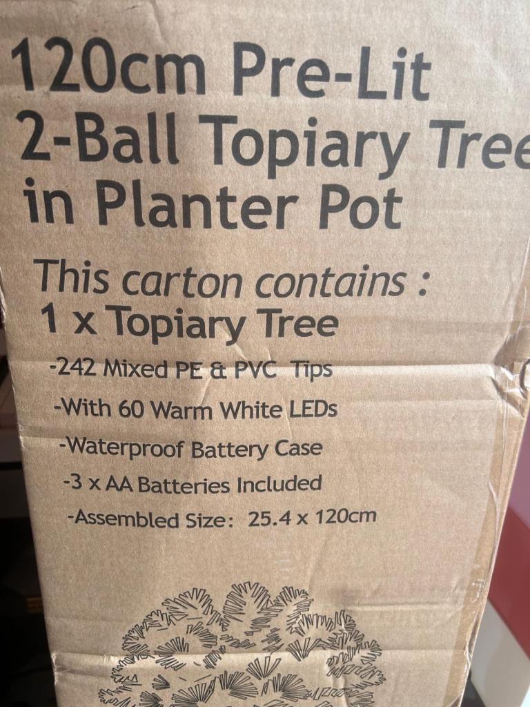 I cannot seem to get the lights to work since Christmas. Not sure what is going on but have not got the time or patience to work through it. I’m sure someone can make it work and enjoy it more than us. Comes in stunning pot.