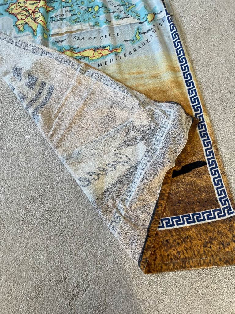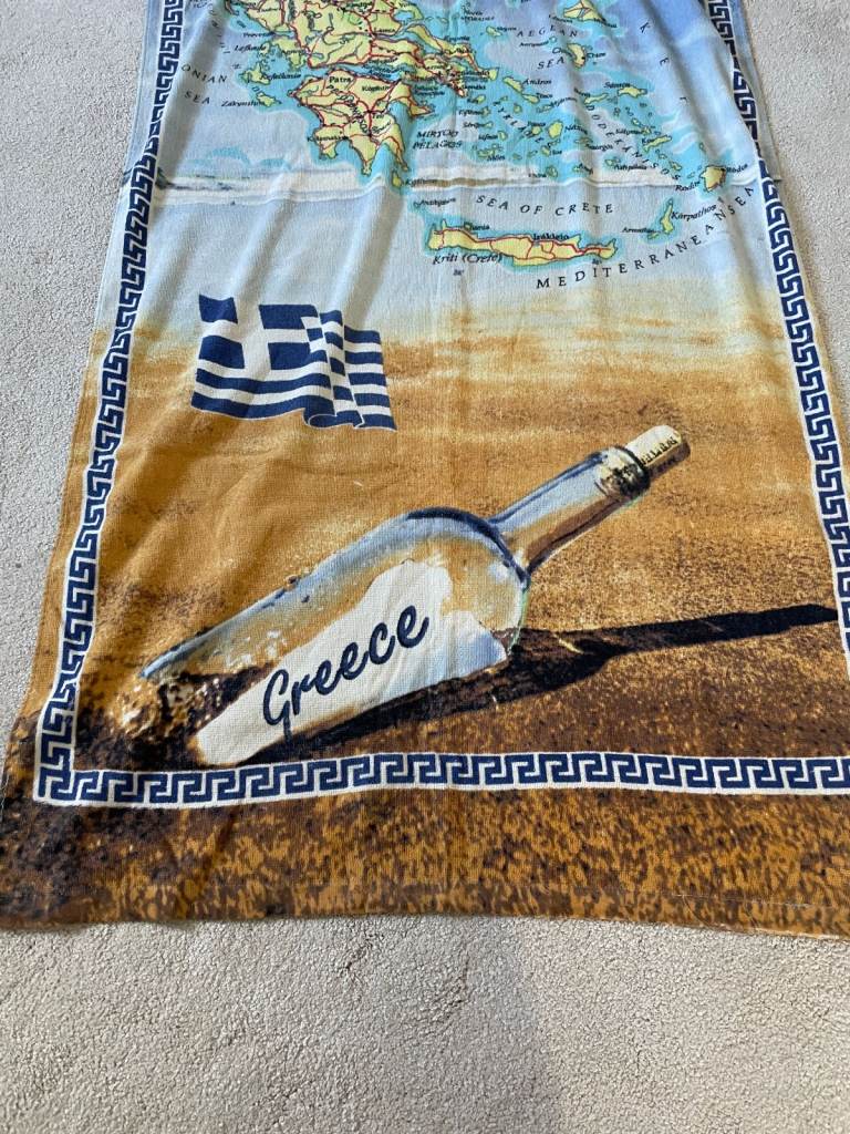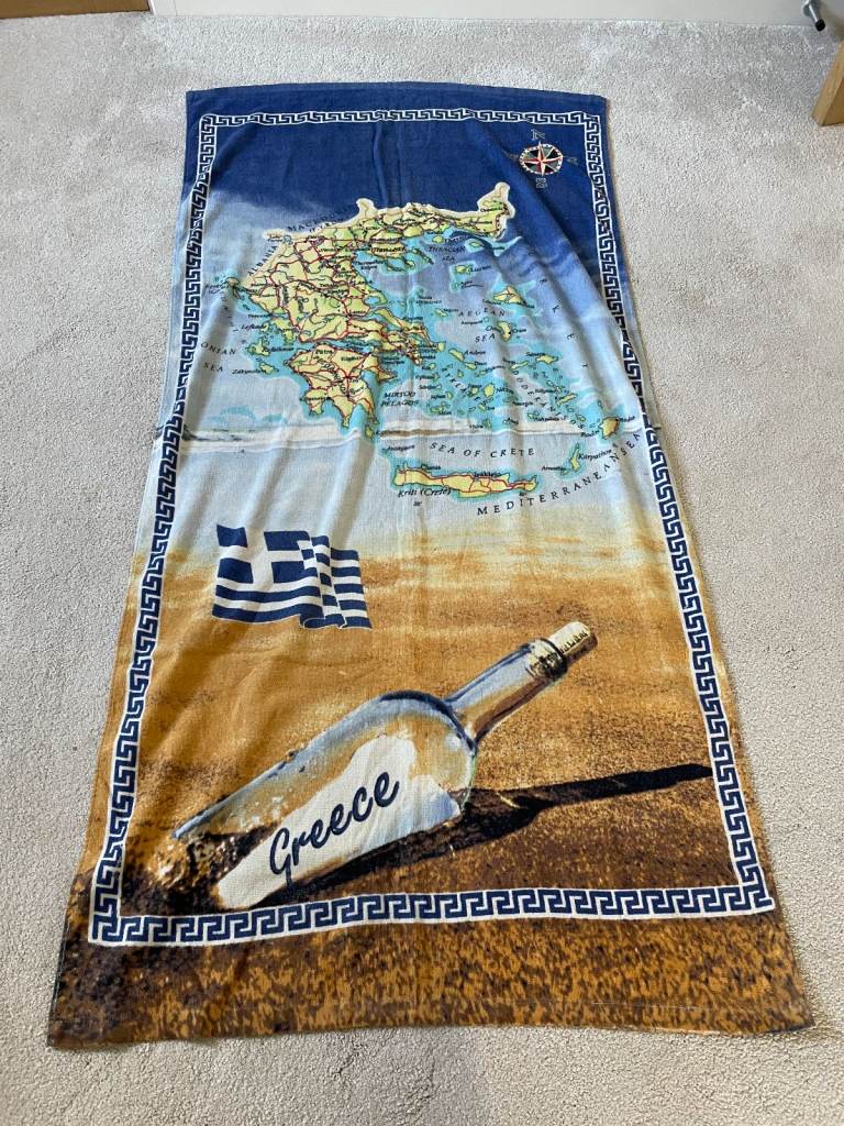 Greece Map Print towel for travel / bath . Light . Large .Hardly used in very good condition . Can be posted for additional cost. Size approx. 148 cmx 75 cm