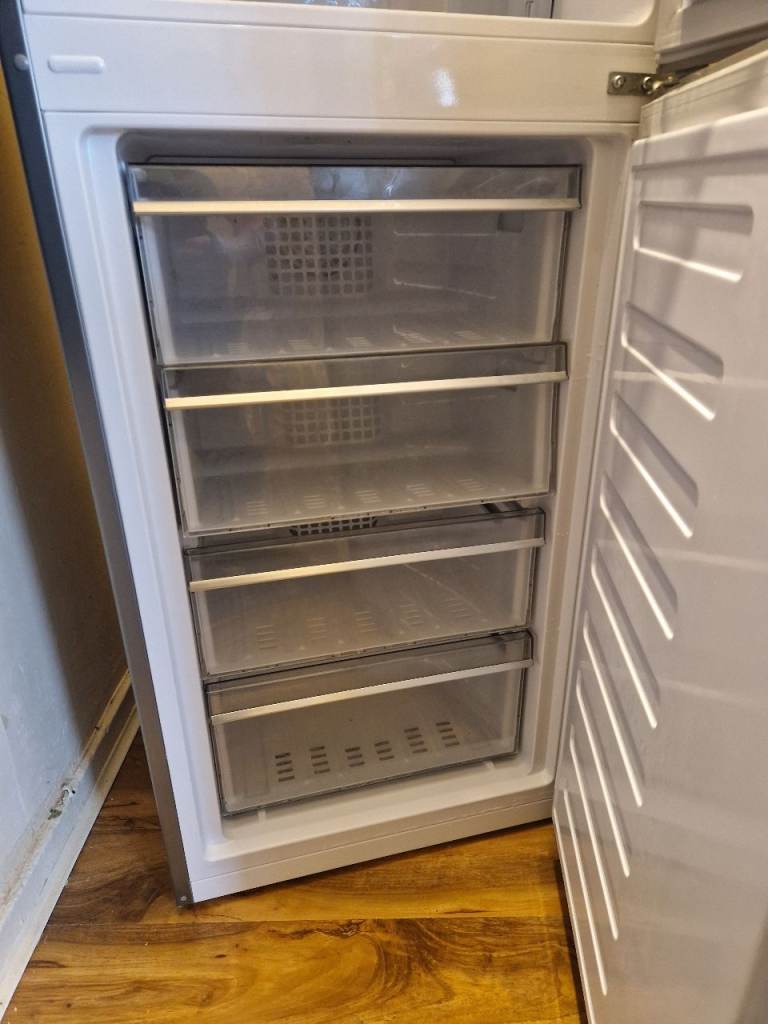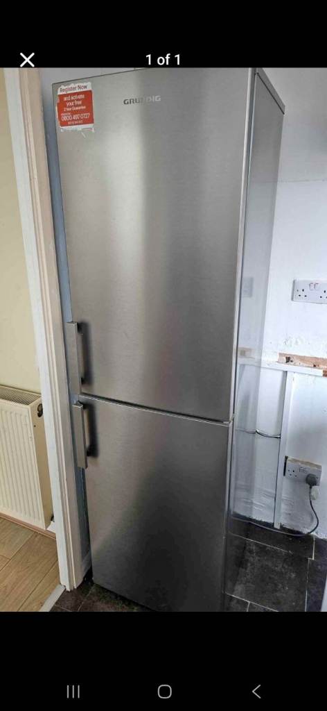 Stainless steel Grundig fridge freezer in excellent condition, less then 1 year old. £100 Ovno. Delivery available at extra cost. Thanks for looking