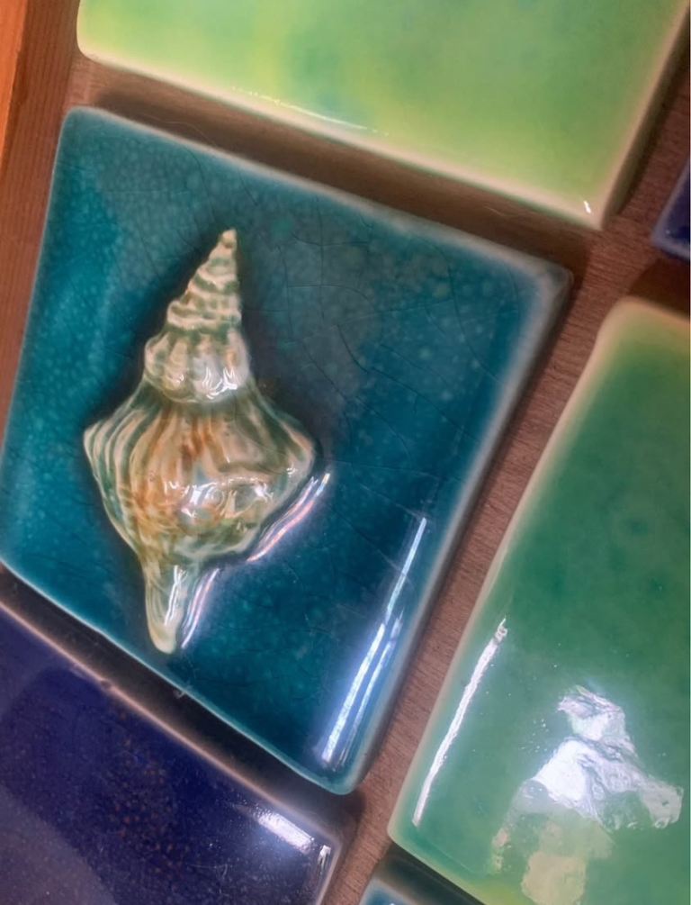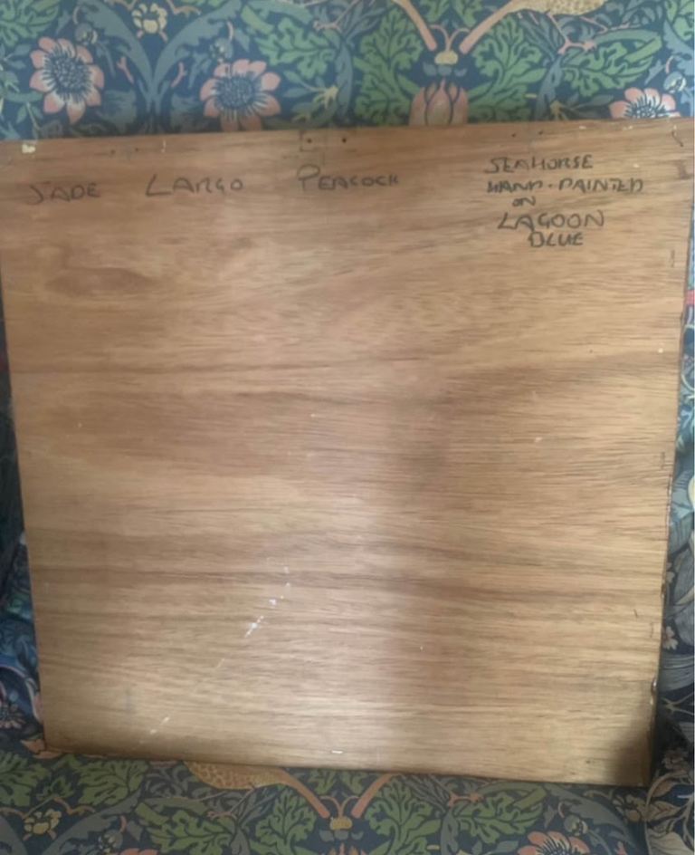 48cm x 48cm hand painted tiled artwork on wood, would make a great table top or piece for kitchen.