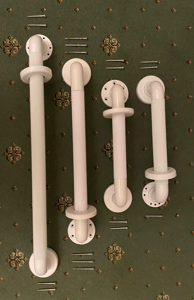 A selection of hand or grab rails in white all in top condition. 2 x 12”, 1 x 18” and 1 x 24”
