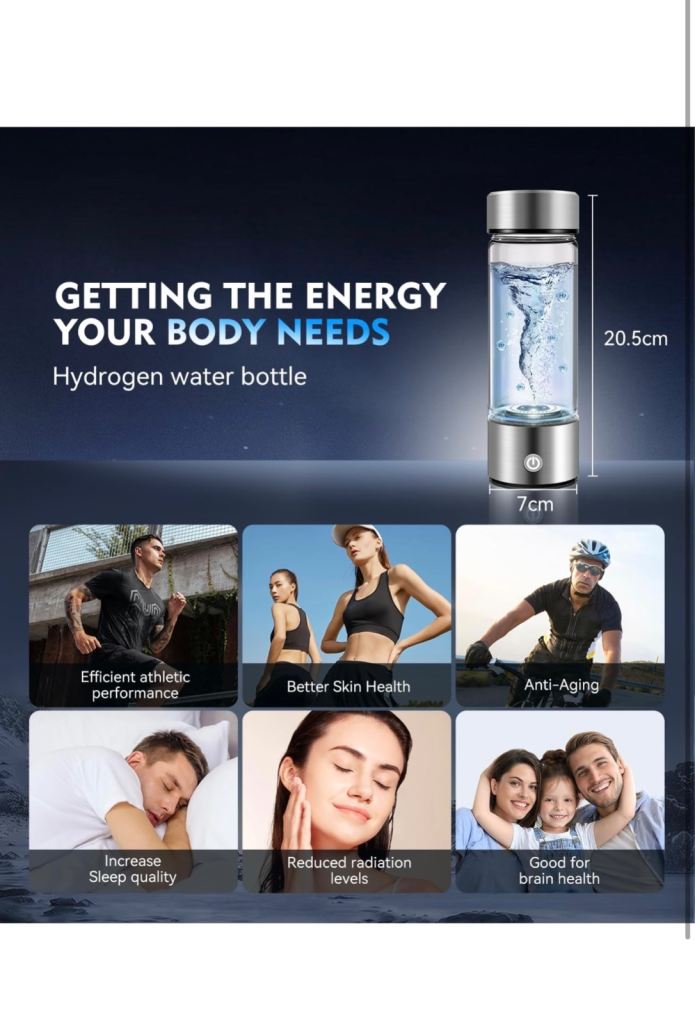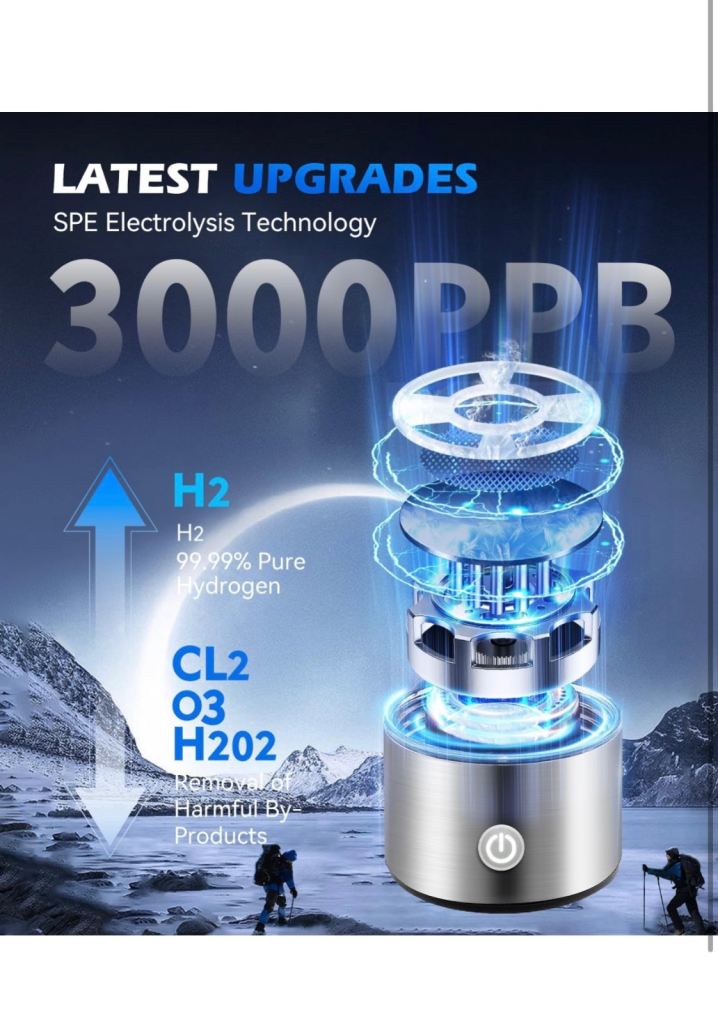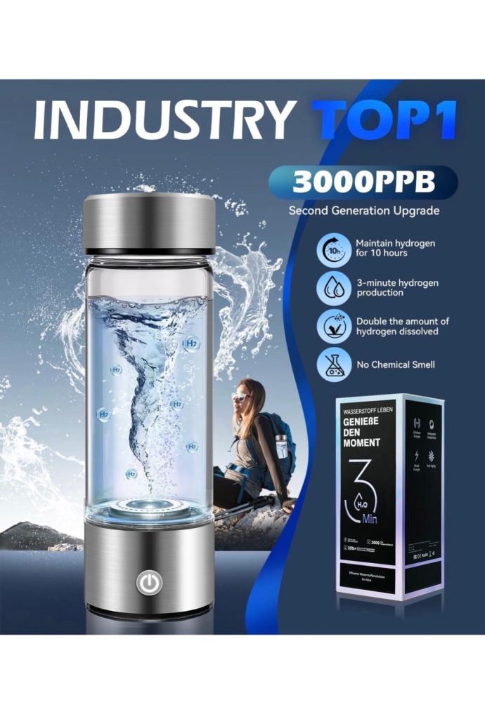 5.0 Hydrogen Water Bottle Generator【Strongest H2 activity】【TOP1 0.8nm H2-O2 Separation】Hydro Water Bottle【Relief-Fatigue】Portable hydro water bottle fit Fitness & Travel 420ml