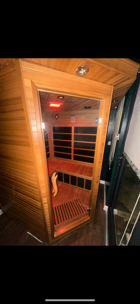 Excellent condition sauna. Heats up to 67/68 degrees. No damage. Needs dismantled for transportation. Easy assembly. Only selling as need the space in the garden for future plans. Can be viewed upon appointment