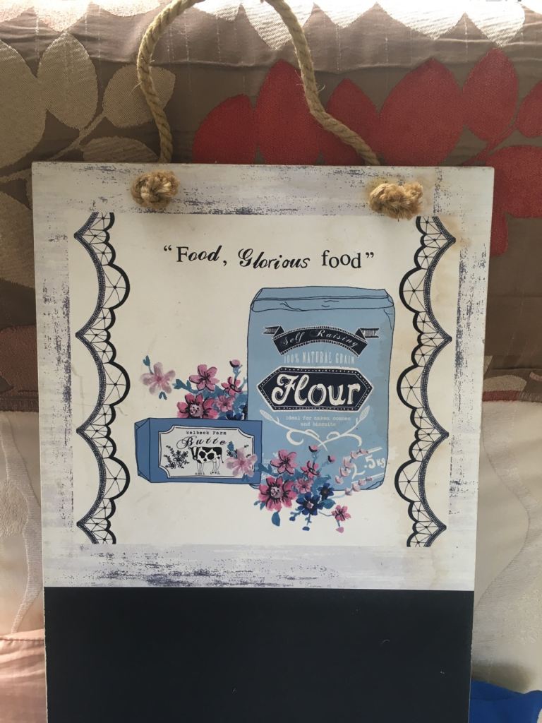 See photos. Wooden hardboard notice or chalk board, suit a kitchen or a cafe etc. Black noticeboard area is 30 x 36 cms. Cash payment, collection only please. Central Poole. Please see my other items for sale. Thank you.