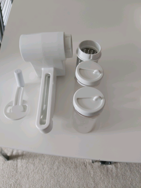 Graters grinders and slicers..have been used a couple of times..all in excellent working order..grater/grinder comes with 2small storage containers with lids and the multi slicer comes with rectangular storage container/tray with lid..collection and cash only.