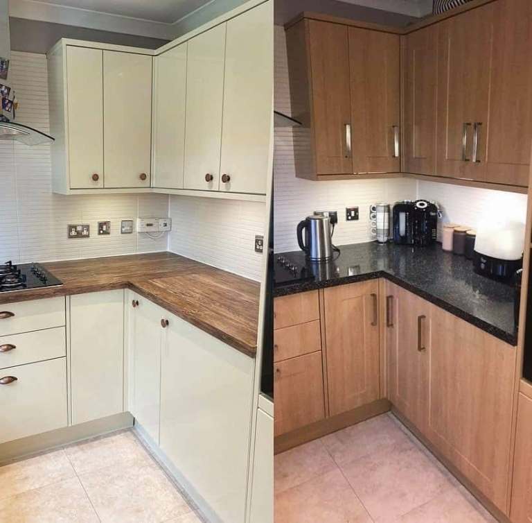 Cheaper alternative to getting a new kitchen get it wrapped at a fraction of the the price message me for details wide range of vinyl available