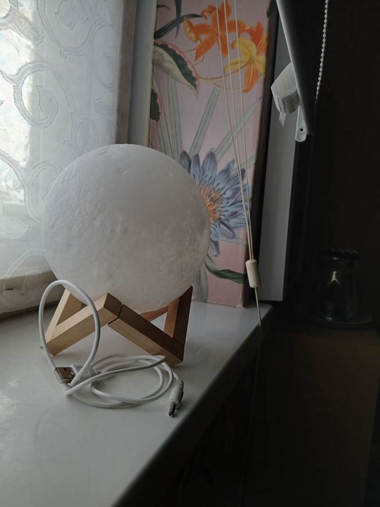 Small moon lamp for sale , excellent condition complete with USB for charging. Touch settings, bright white,warm white ,on/off.