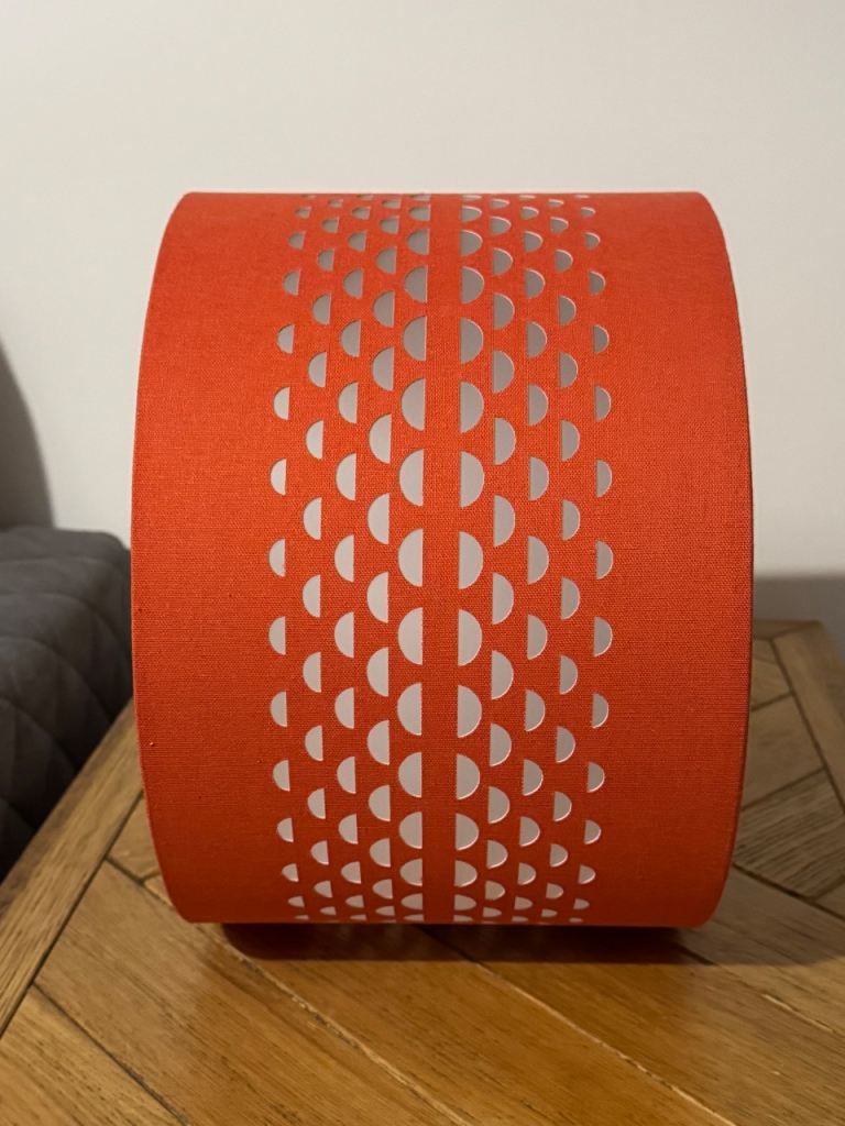 Modern orange fabric lampshade with paper base. Approx 30cm 12” diameter x 20cm 8” deep.