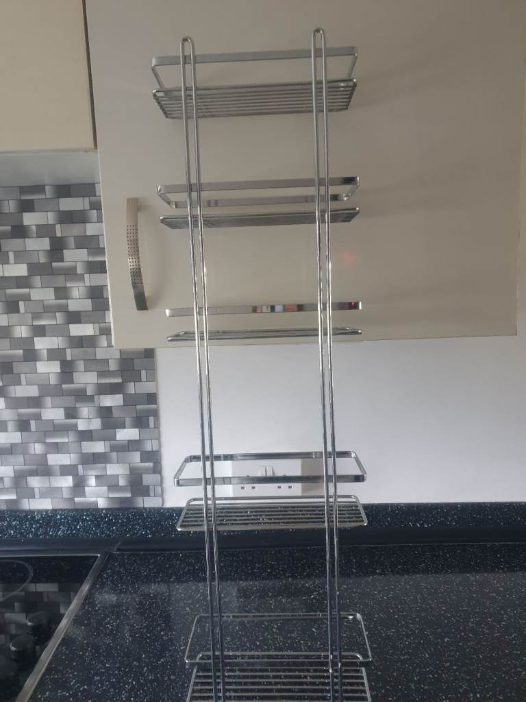 Lovely statement piece for bathroom lower bottom two tiers suit large shampoo bottles, shower gels etc.