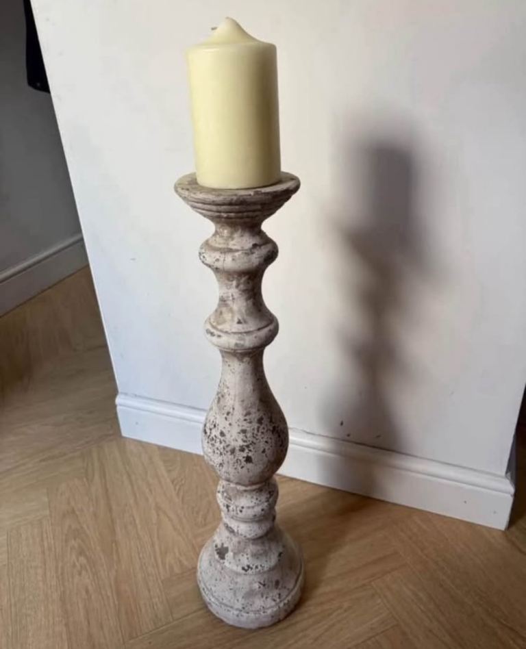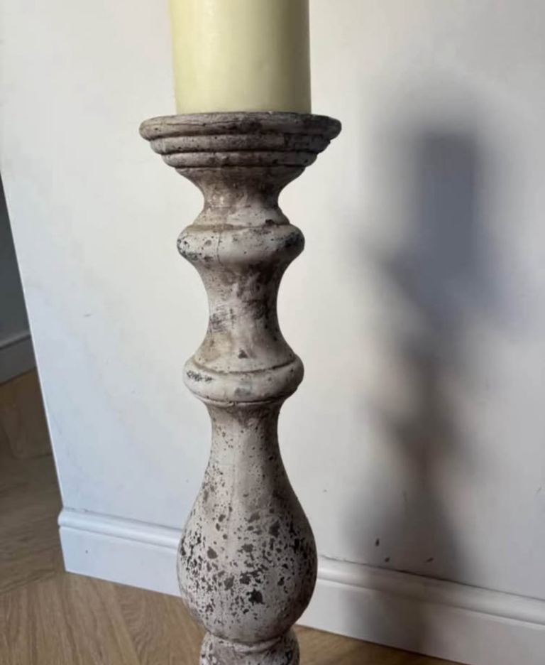 Large Stone Ceramic Column Candle Holder includes candle as well