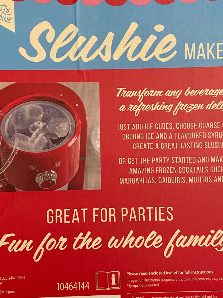 Still boxed, this slushie maker is the perfect addition to any party. Hardly used.