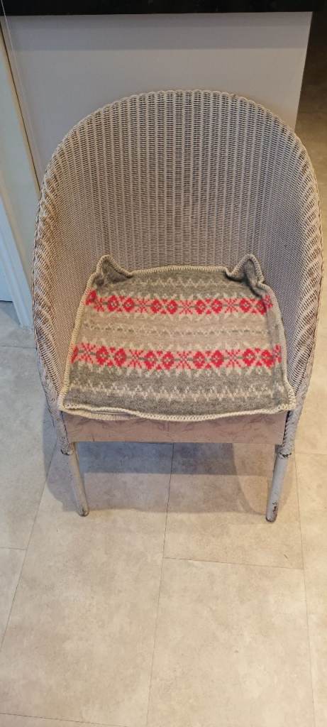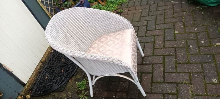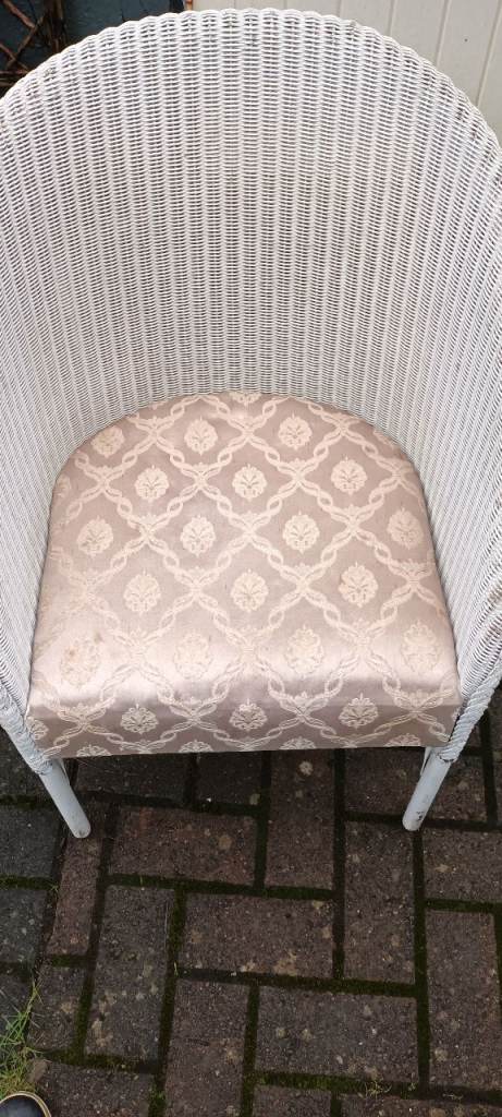 Original Lloyd Loom chair. Style name LUSTY with original label still attached. In good condition but may need new silk seat cover as original is faded. Chair in clean condition and still comfy to sit in. Handy as a bedroom chair or in a conservatory.