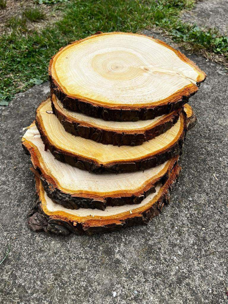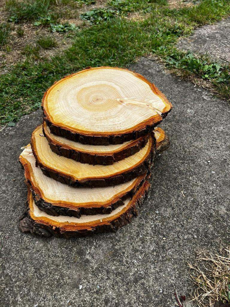 Chainsaw cut log slices, can be used for table decorations, cake stands etc