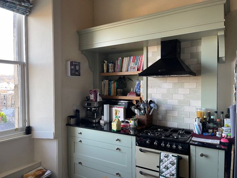 Posting for 18+ yearsNearly New (2024) Bespoke Sage Green Kitchen with Quartz Worktop & Rangemaster – Edinburgh
