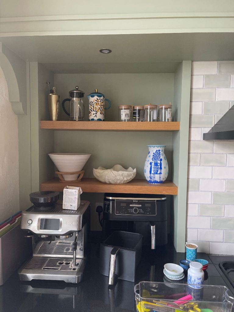 Stunning bespoke kitchen installed in 2024, handmade by a Stockbridge-based joinery company. This is a nearly new, high-spec kitchen finished in a timeless sage green shaker style, available due to renovation plans.