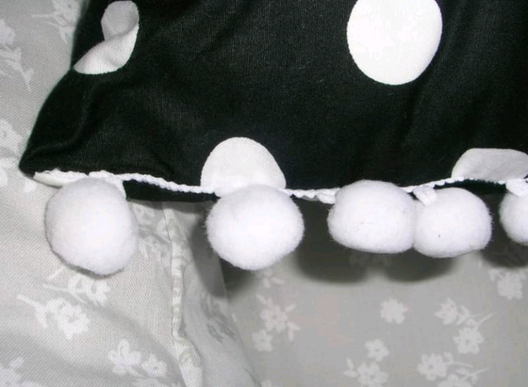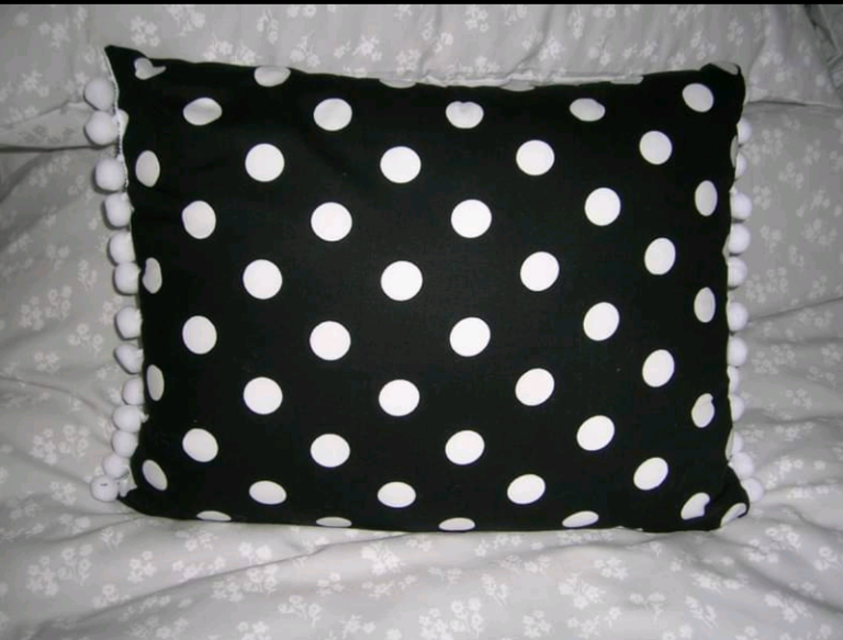 NEW Black cushions white spots & small white poms poms 2@ 14"x10.5"