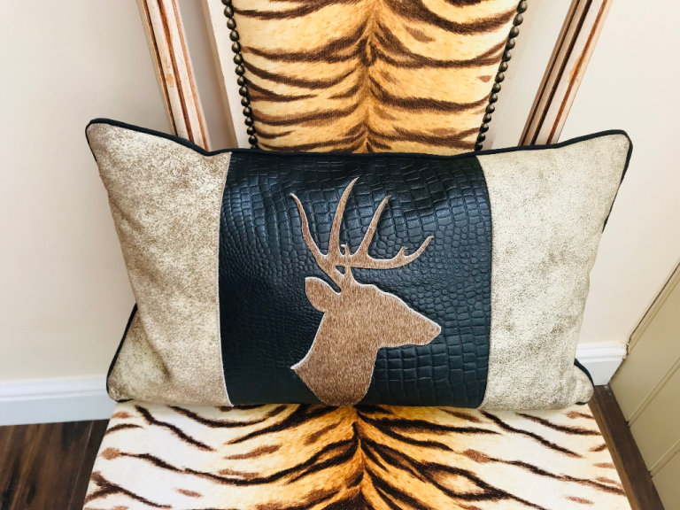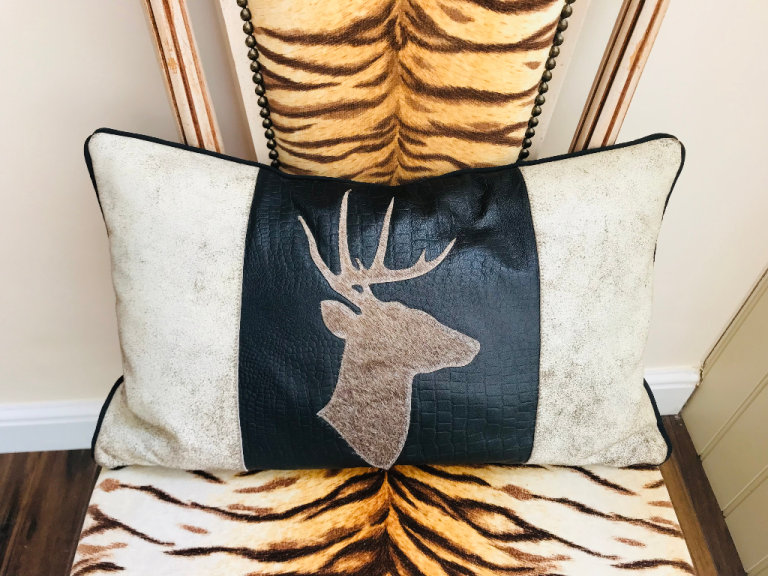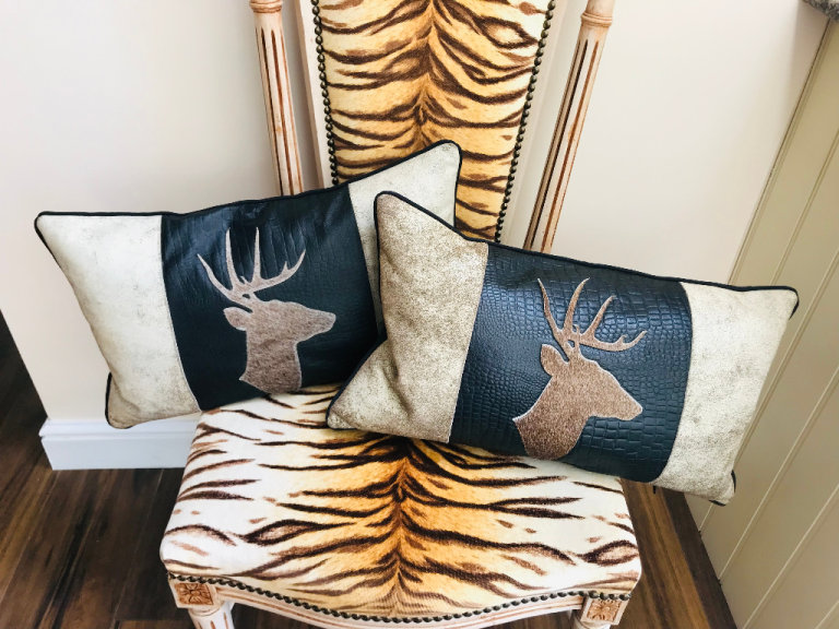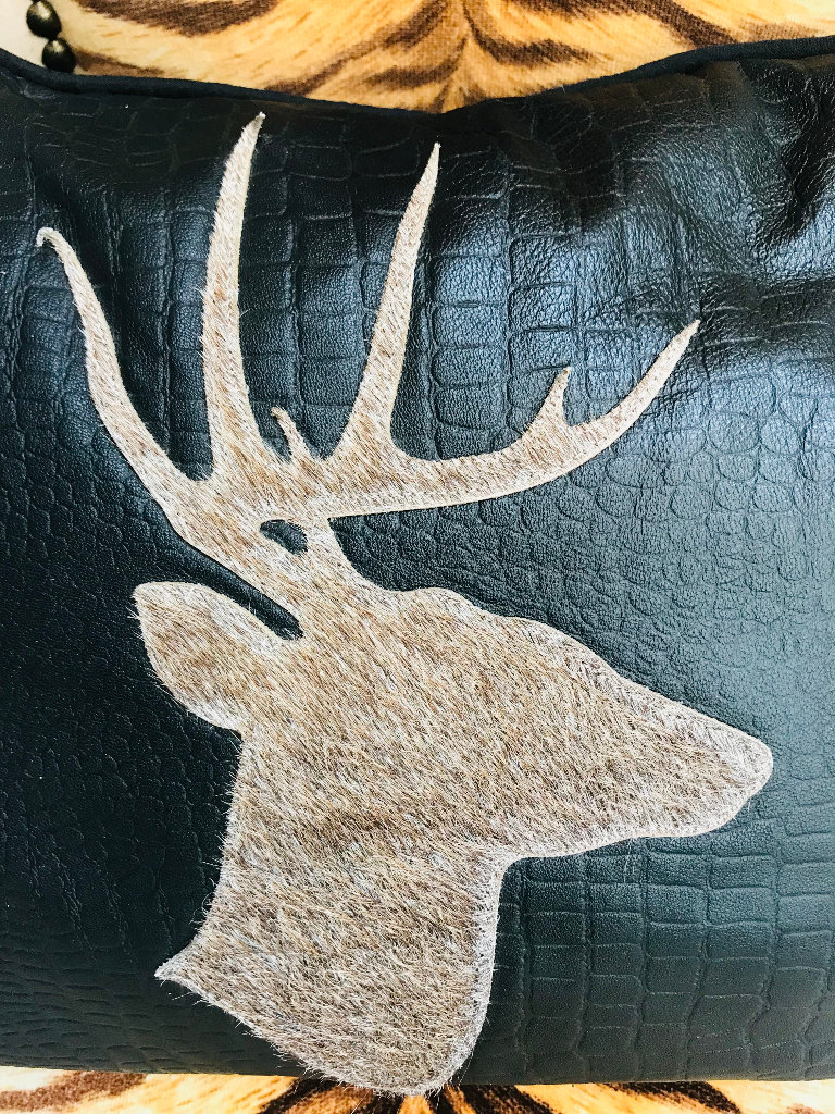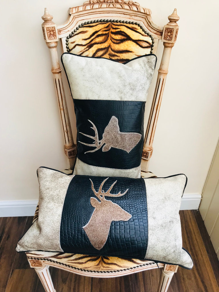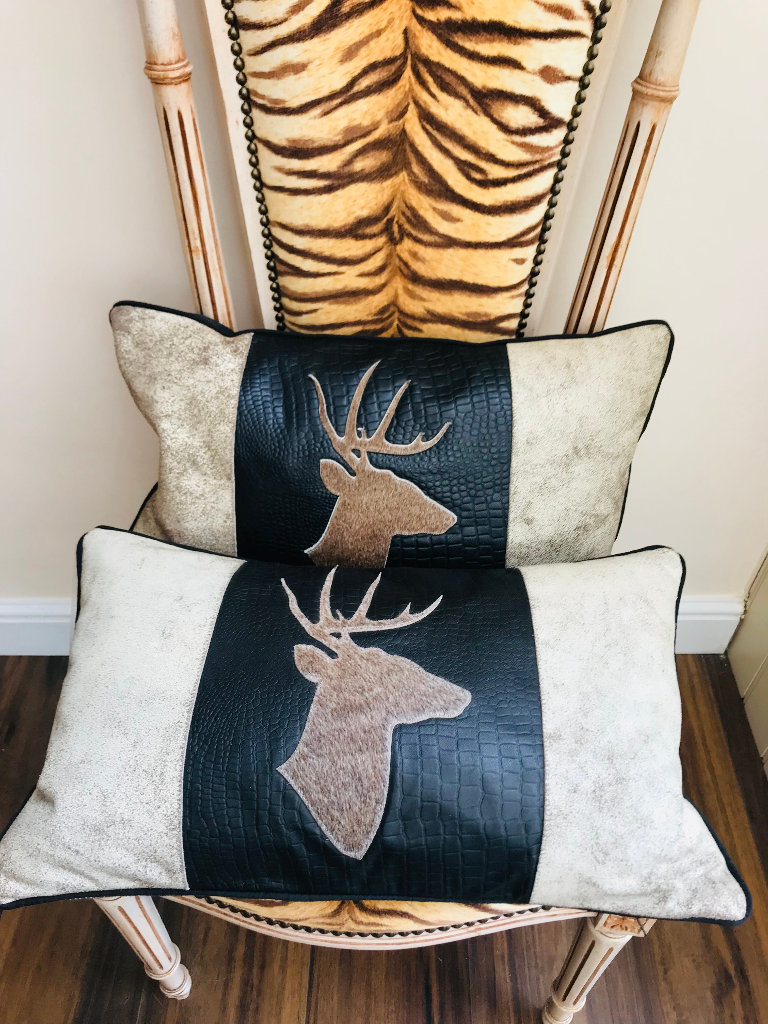 NEW COWSKIN COWHIDE LEATHER STAG ANTLER CUSHIONS X 2