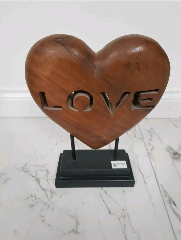 New Hand Carved in Thailand Brown Wooden Love Heart Sculpture