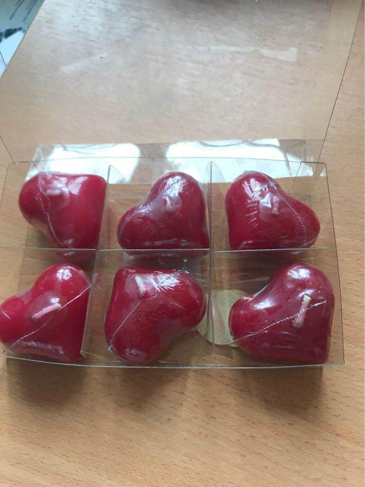 Small love heart candles, each individually sealed. About 3.5cm at widest point. All 6 for £3 total