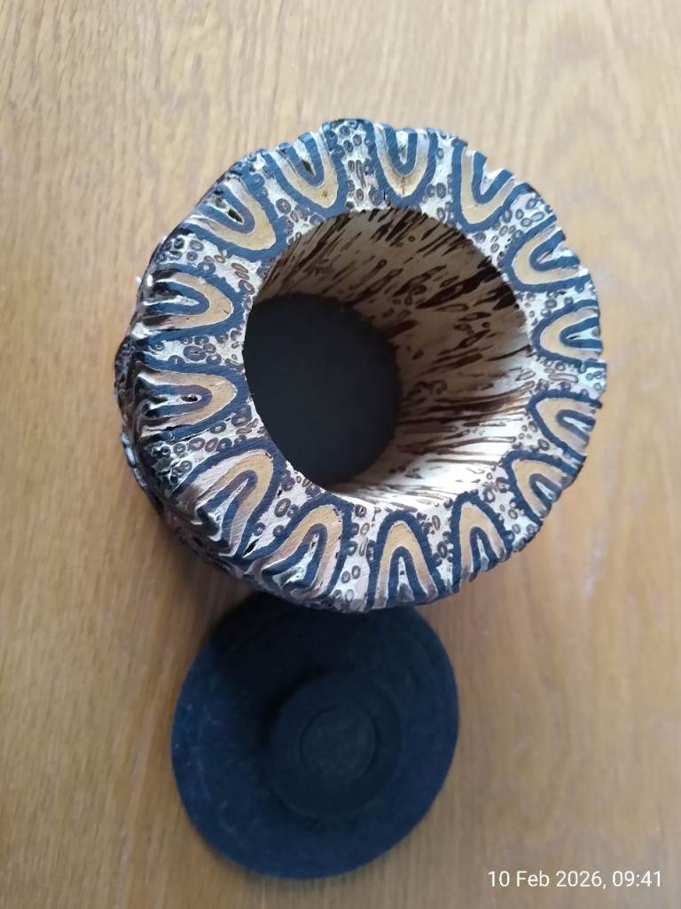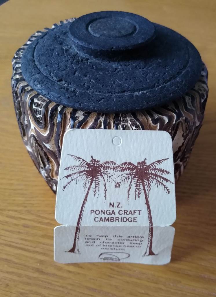 This is a beautiful Ponga craft small bowl/container with lid. It has a lovely textured pattern and is made from a Mamuka tree.