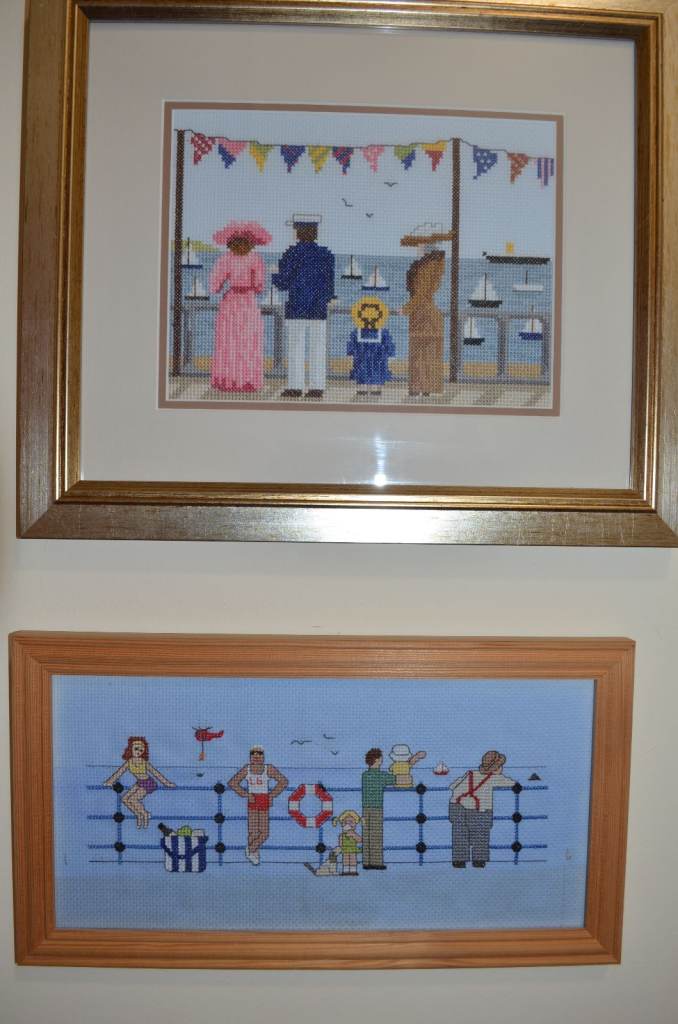 PAIR HAND STITCH NEEDLEWORK SEA VIEW
