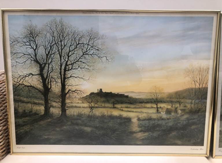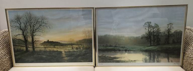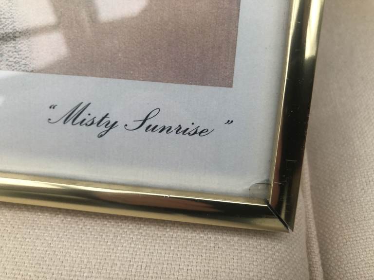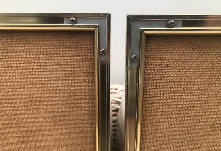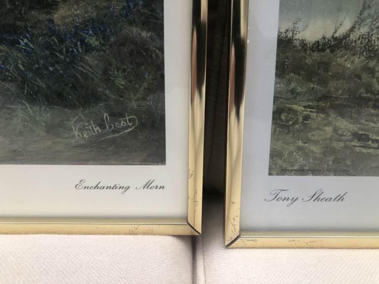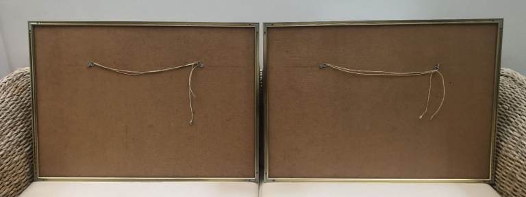 Pair of gold metal frames containing prints from Venture Prints (preowned)