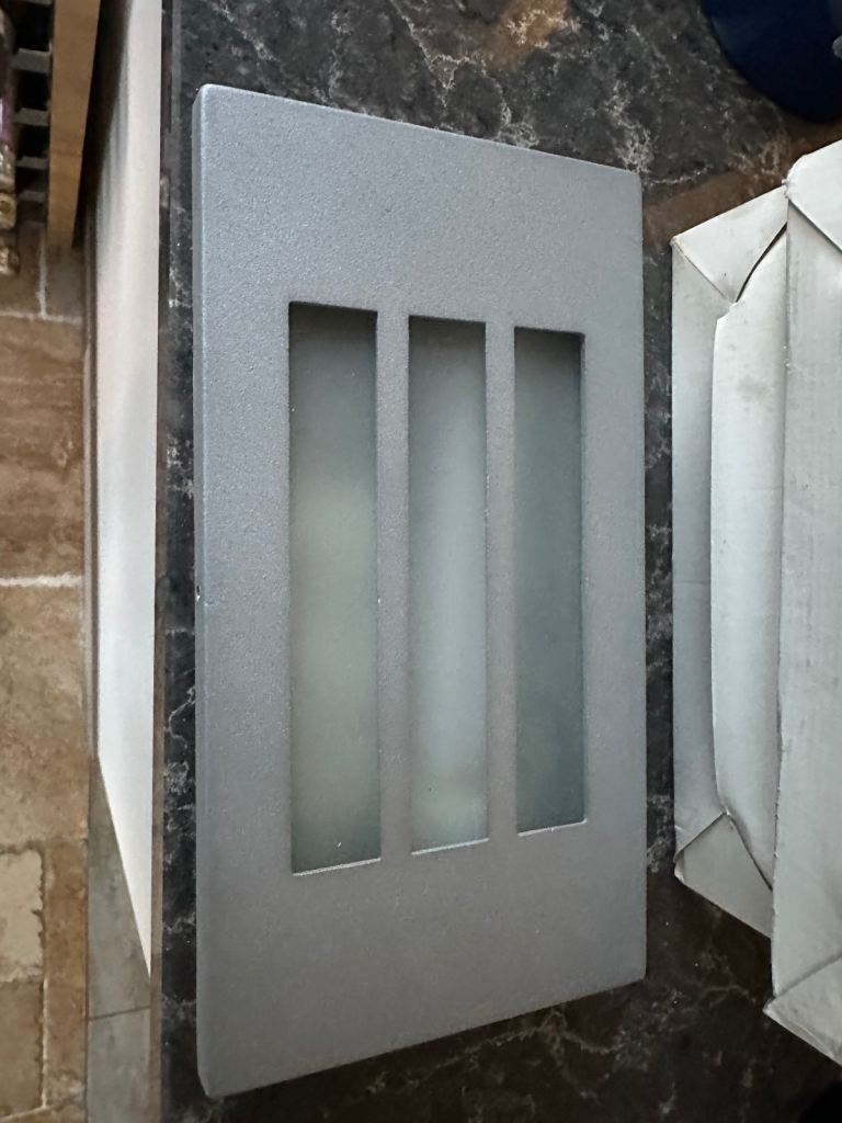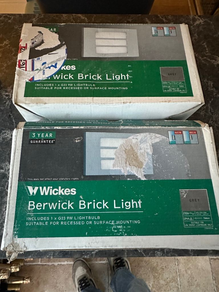 Pair of outdoor brick lights, please see photos for colour, bulb type (bulbs included) and dimensions, can be surface mounted or recessed, price is for the pair. Csn be collected from Bradley Stoke also