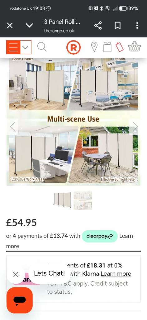 New set of 3 cream roller privacy screens, as pictured from the range one set up around month ago