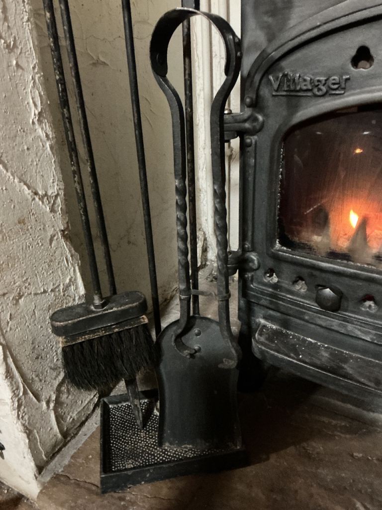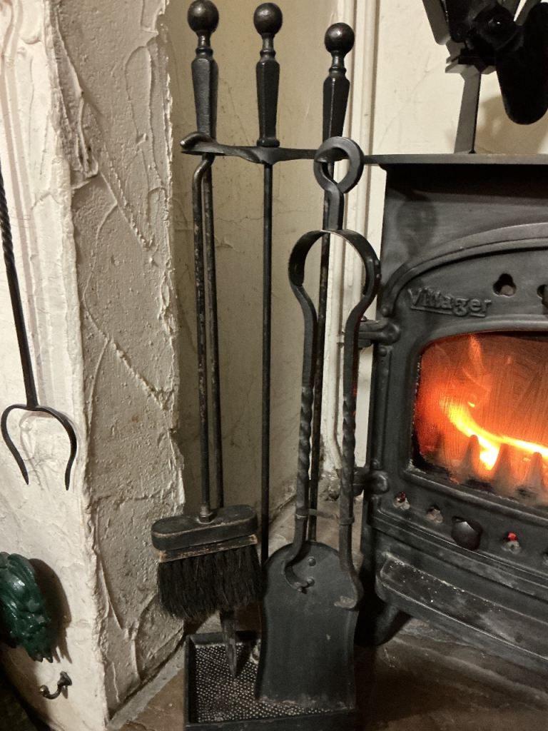 APPROXIMATELY 30” high. TONGS, BRUSH, POKER & DUTPAN ALL IN VGC
