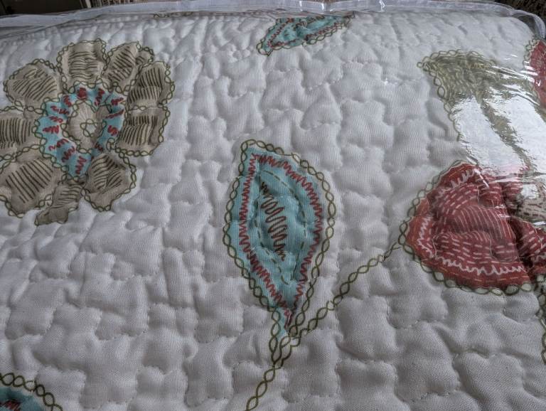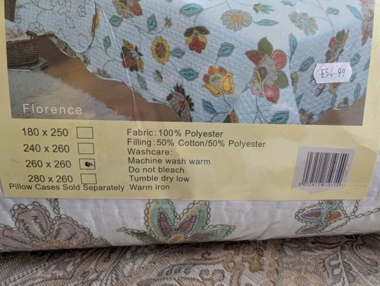 Double quilted bedspread, autumn colours, off white background. New in bag, never used. 260cm x 260cm.