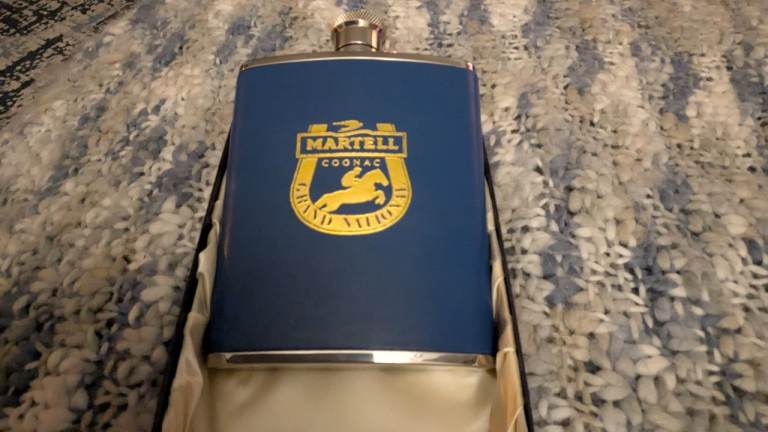 This was produced as a commemorative item. Martell no longer sponsor the Grand national. Brand new and boxed. Box is silk lined. Gold writing on the flask. A beautiful item for any collector.