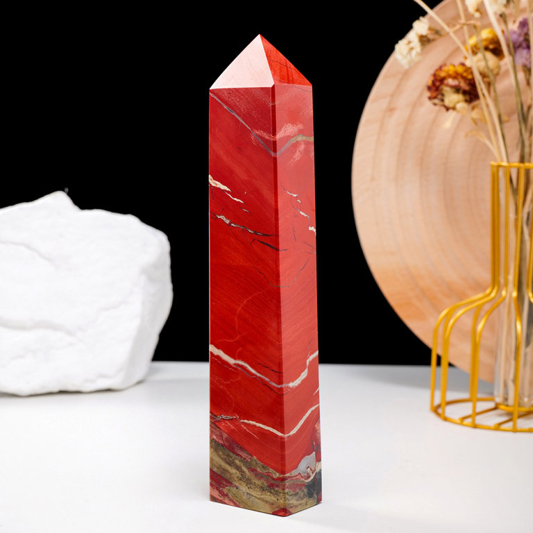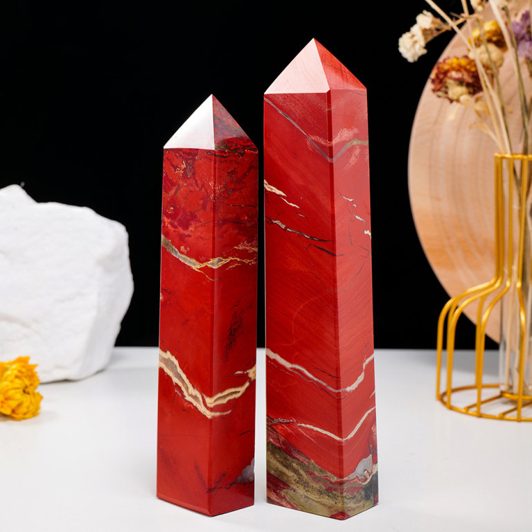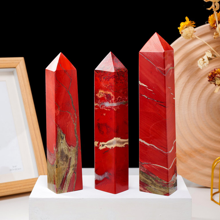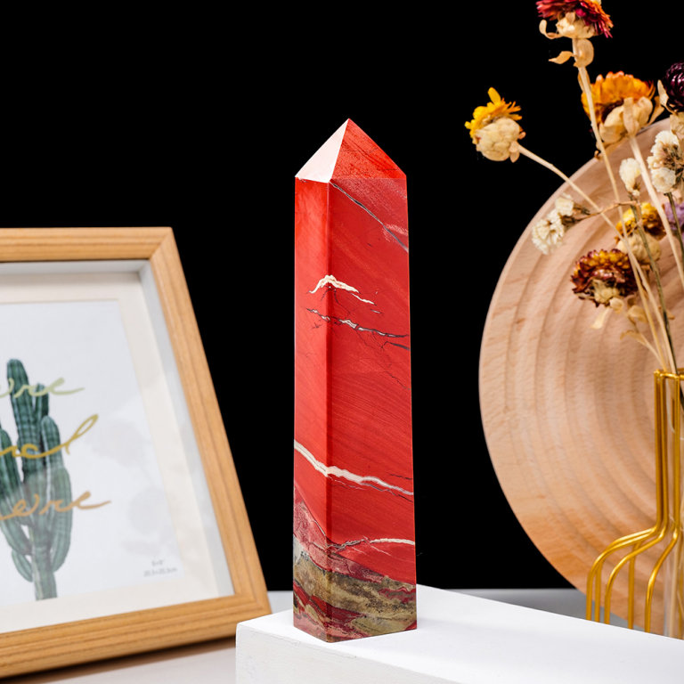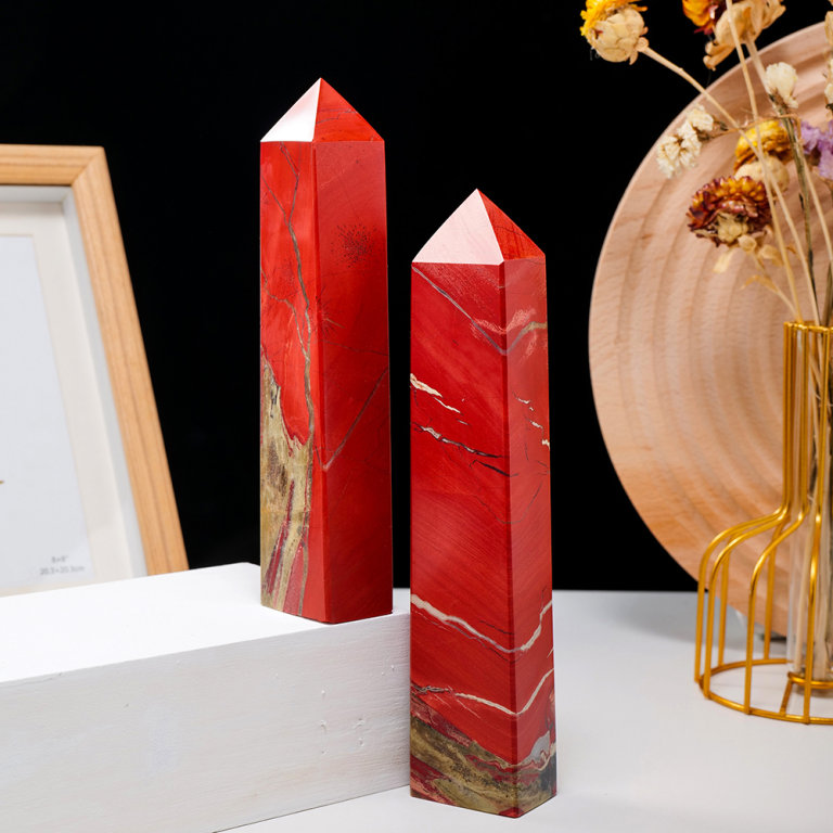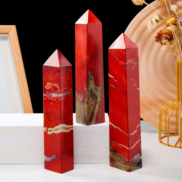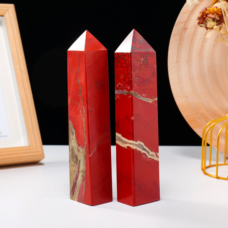 Red Jasper Stone Crystal Point Luxury Home Obelisk