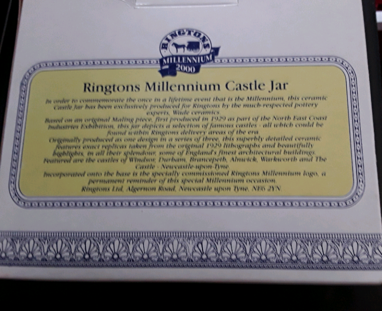 Ringtons Millennium Castle jar ( 5.5 inch tall), New in box, 8 Castle designs . Pick up from Peterlee.
