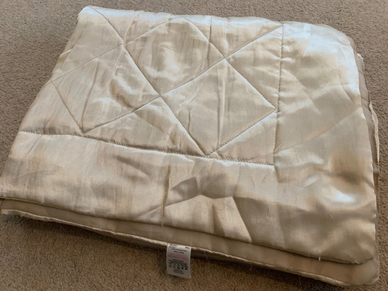 Satin beige throw & two sequences oblong shape cushions, in good condition. Quick sale only only £4.00 for three items.
