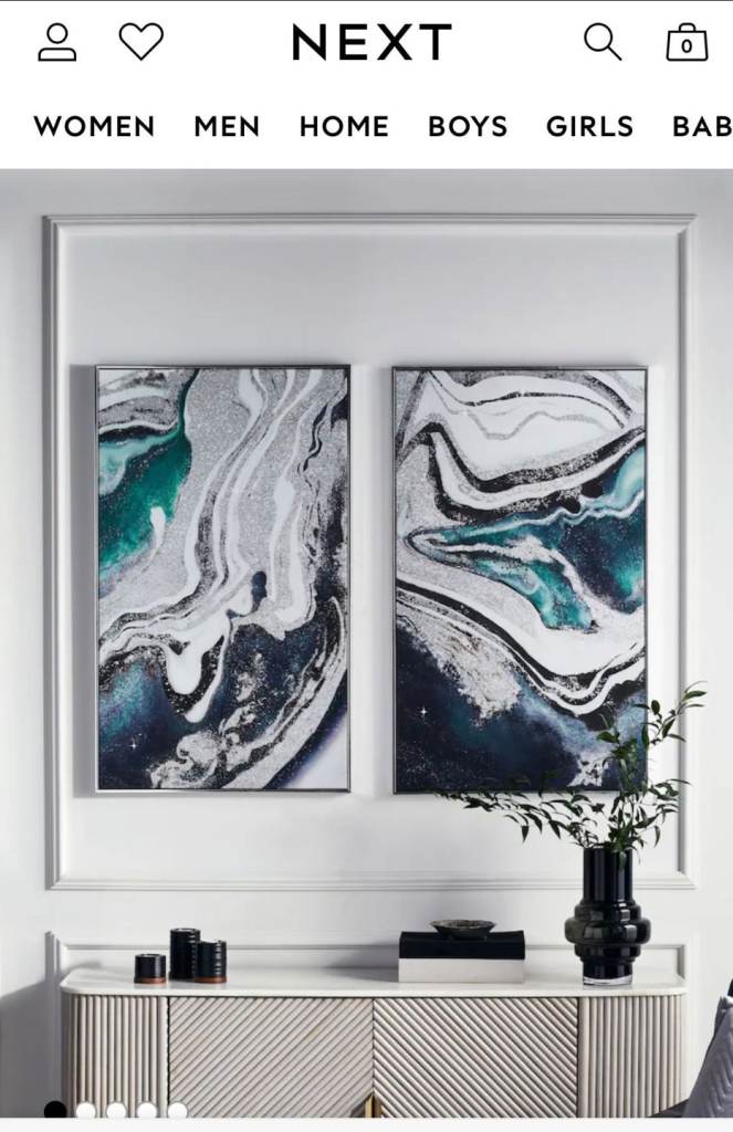 Set of 2 Blue-Green Navy and Silver Abstract Framed Canvas Wall Art from Next